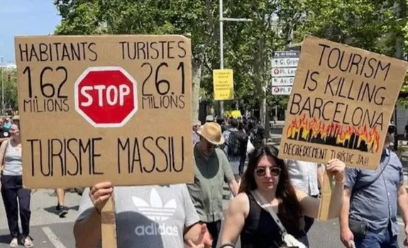Barcelona, one of Europe’s most celebrated destinations, is reaching a tipping point. This week, hundreds of residents took to the streets with water pistols, protest banners, and bold chants — not against politicians or corporations, but tourists.